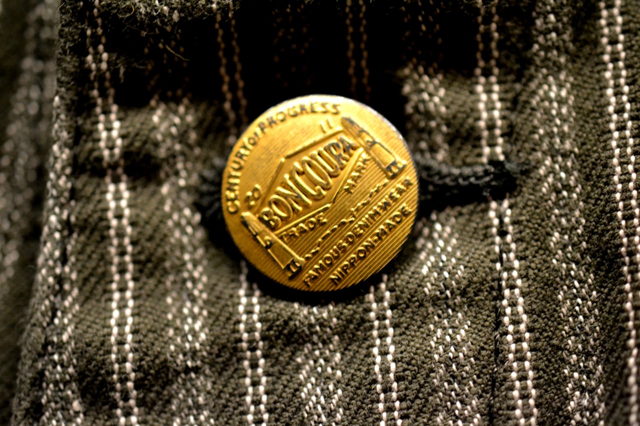 さらに、BONCOURAを象徴する「首振り灯台ボタン」を採用。職人技が生み出す独特の凹凸は使い込むほどに艶を増し、服全体の存在感を引き立てます。