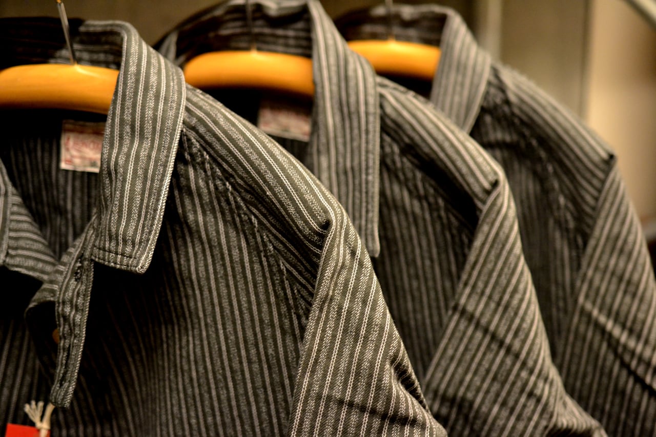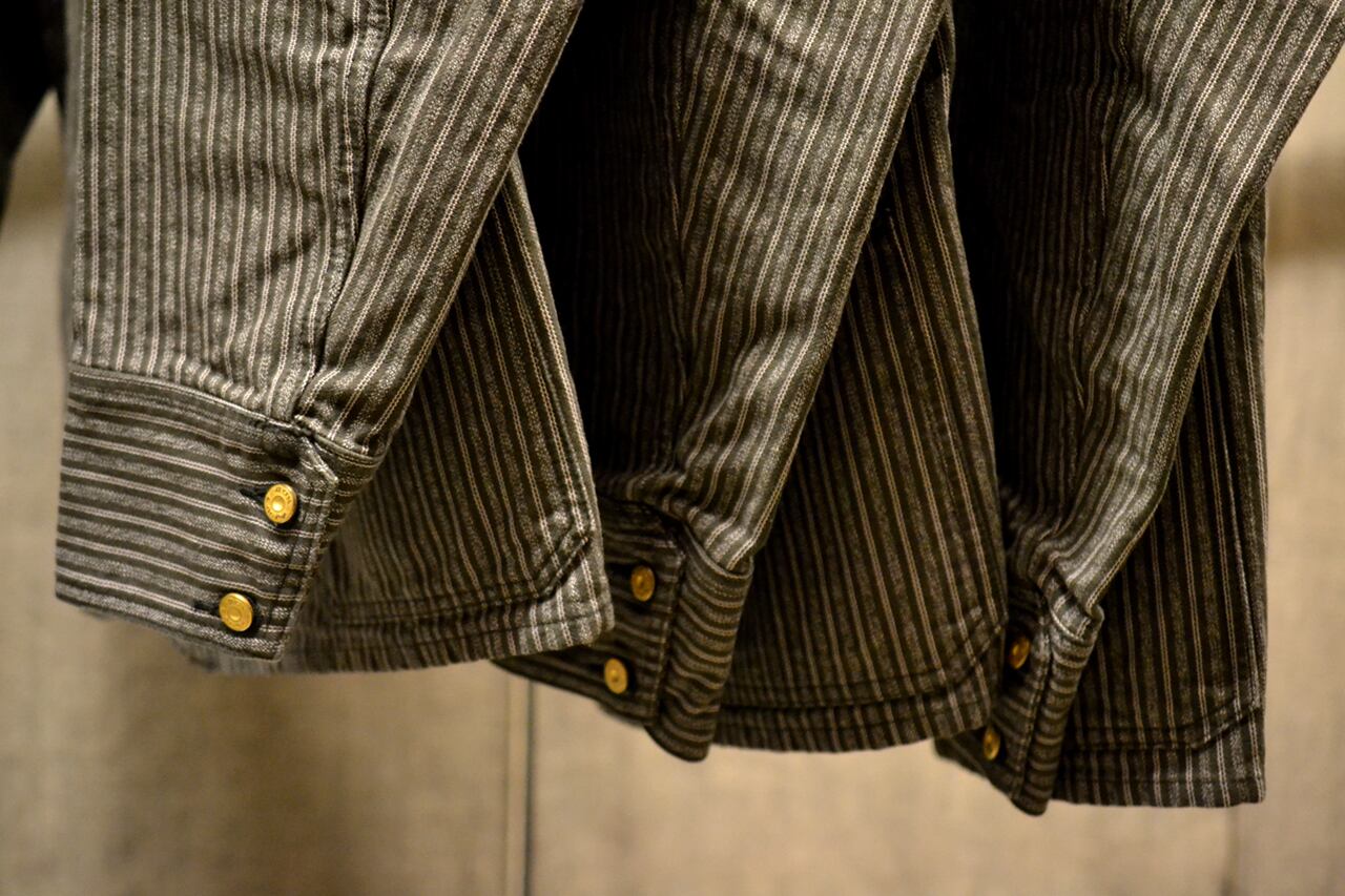 生地はヨーロッパのワークジャケットを思わせる高密度ストライプ。ハリとコシがあり、着込むほどに味わい深い表情へと変化します。