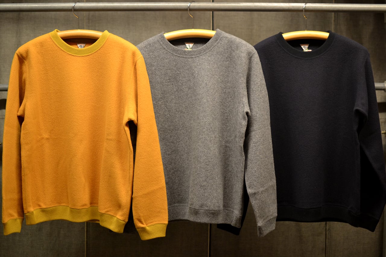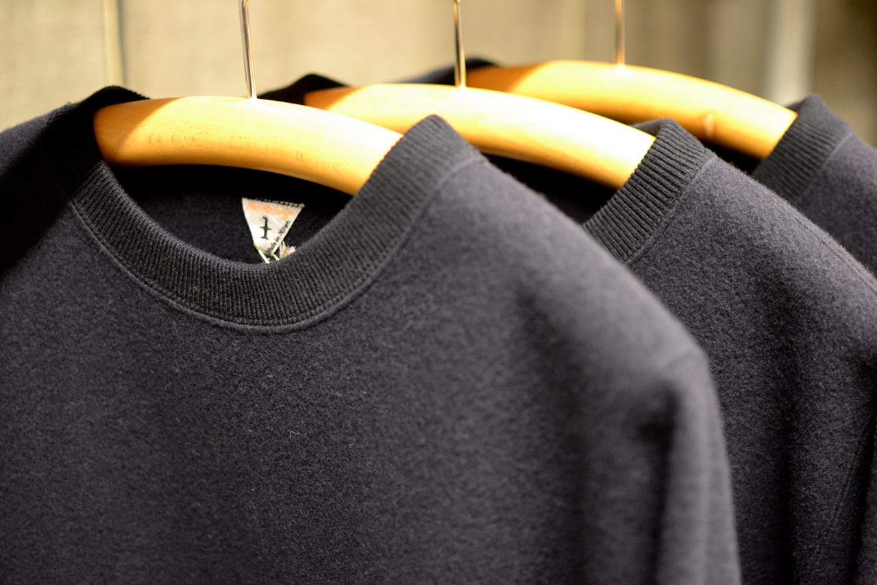 ウール100%でつくられた、セーターのようでスウェットのようなクルーネック。