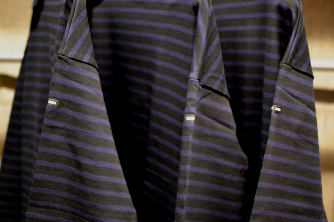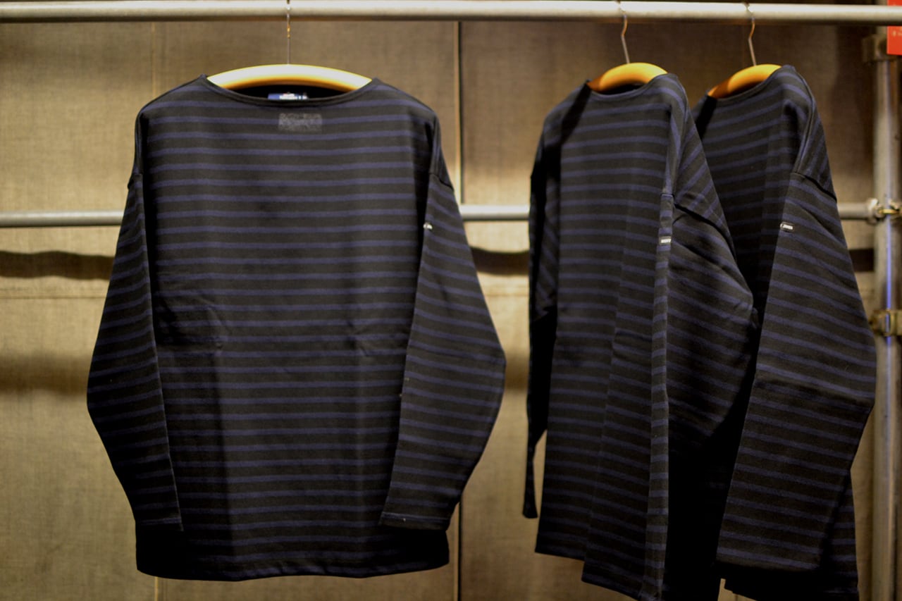 絶妙なドッロップショルダーのバランスはセントジェームスムスらしい伝統的なマリンスタイルにしっかりと落としこまれています。