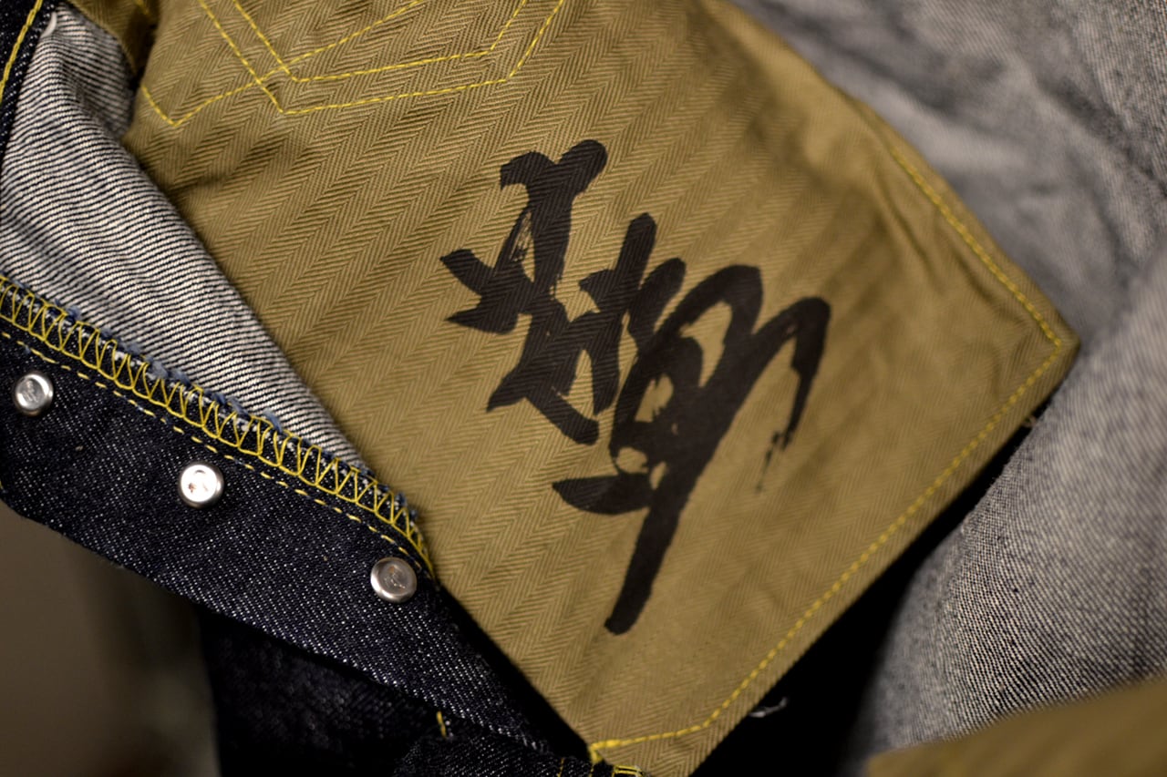 ポケットの内側には、ミリタリーヘリンボーン生地を使用し、15周年を記念して、森島氏の直筆「藍」の文字をプリントしています。