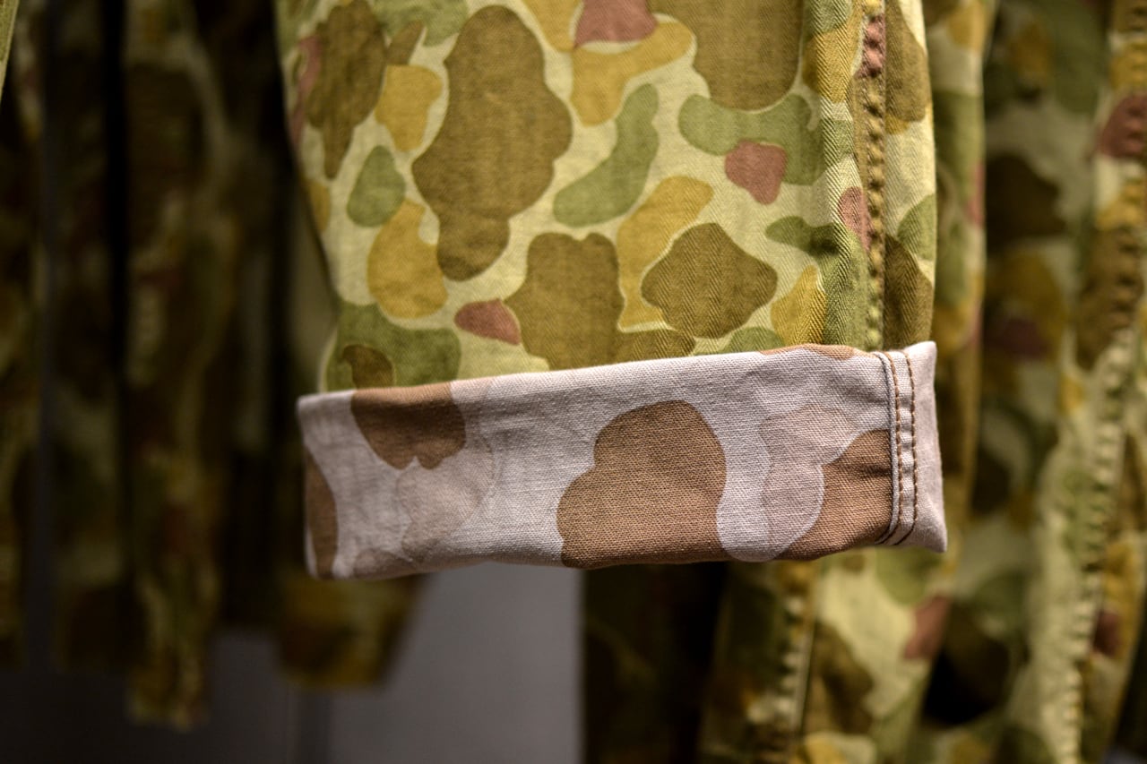 生地には、ヘリンボーン織りのダックハンターカモを採用。