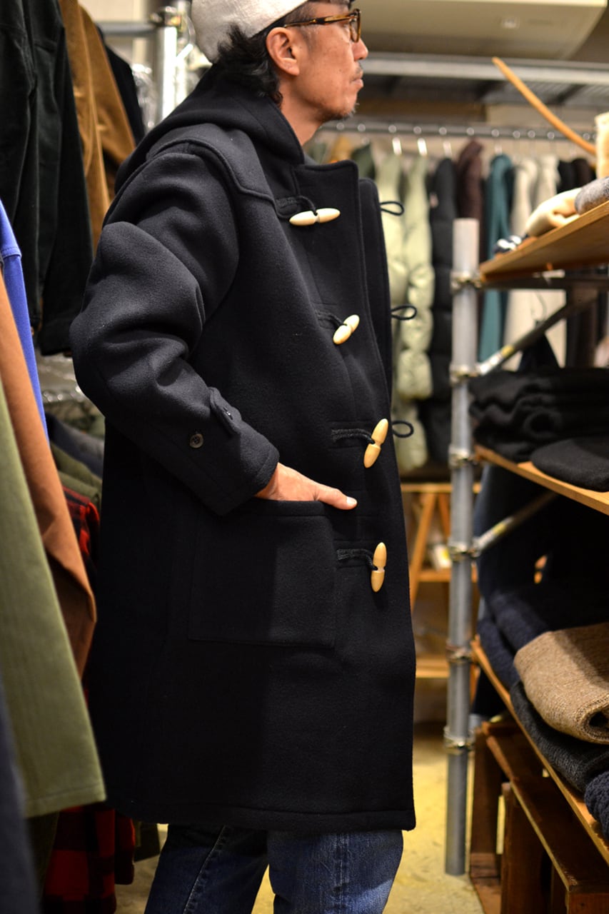 BONCOURA ダッフルコートは原毛から厳選した糸を旧力織機でゆっくり織り上げたヘビーメルトンを使用しています。
