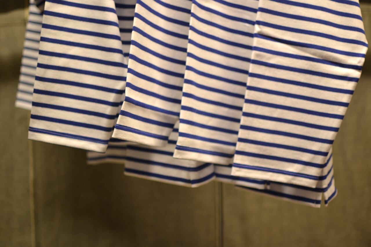 絶妙なドッロップショルダーのバランスはセントジェームスムスらしい伝統的なマリンスタイルにしっかりと落としこまれています。