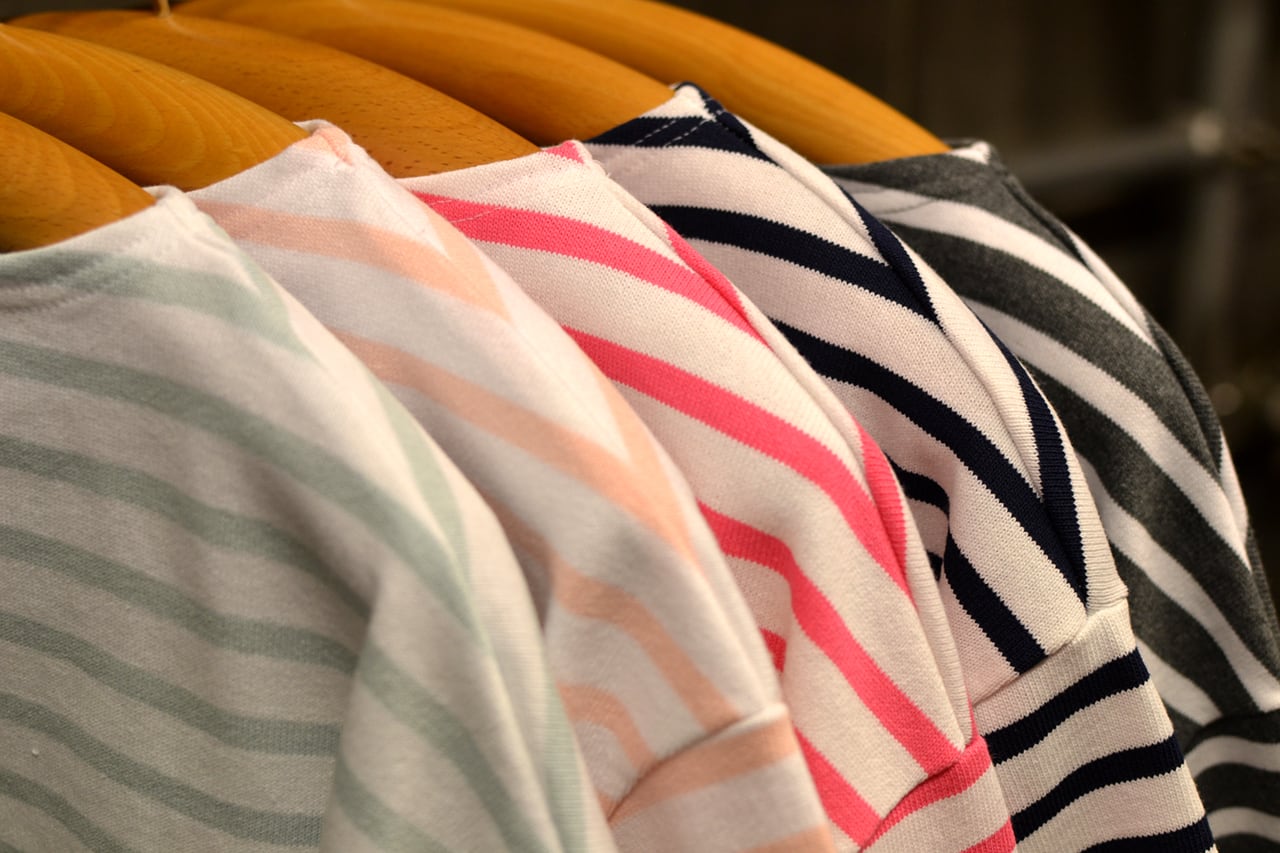 絶妙なドッロップショルダーのバランスはセントジェームスムスらしい伝統的なマリンスタイルにしっかりと落としこまれています。
