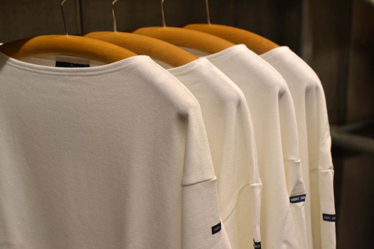 絶妙なドッロップショルダーのバランスはセントジェームスムスらしい伝統的なマリンスタイルにしっかりと落としこまれています。